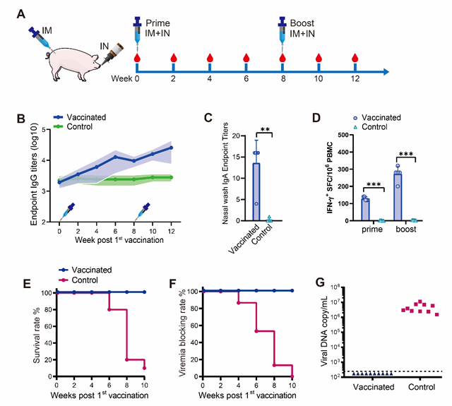 近日,中國科學(xué)院廣州生物醫(yī)藥與健康研究院、廣州實驗室、廣州恩寶生物醫(yī)藥科技有限公司等單位合作,在腺病毒載體非洲豬瘟疫苗研制及免疫策略研究方面取得新進展,相關(guān)研究成果以“A new vaccination regimen using adenovirus-vectored vaccine confers effective protection against African swine fever virus in swine”為題在線發(fā)表于Emerging Microbes & Infections。