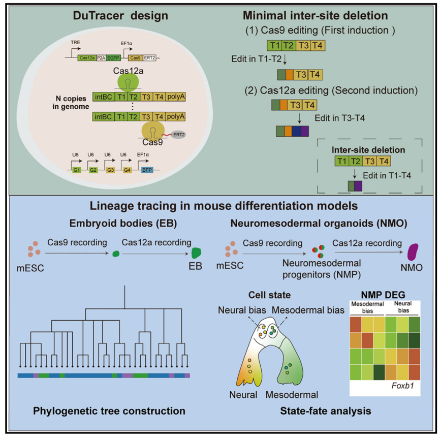 2025年1月28日,中國(guó)科學(xué)院廣州生物醫(yī)藥與健康研究院彭廣敦研究團(tuán)隊(duì)在《細(xì)胞·報(bào)告》(Cell Reports)發(fā)表重要研究成果,成功開發(fā)出名為“DuTracer”的新型單細(xì)胞譜系示蹤技術(shù)。該技術(shù)通過(guò)巧妙結(jié)合兩種基因編輯工具CRISPR-Cas9和Cas12a,顯著提升了細(xì)胞譜系追蹤的精度和深度,為解析胚胎發(fā)育、器官再生及疾病機(jī)制提供了全新工具。