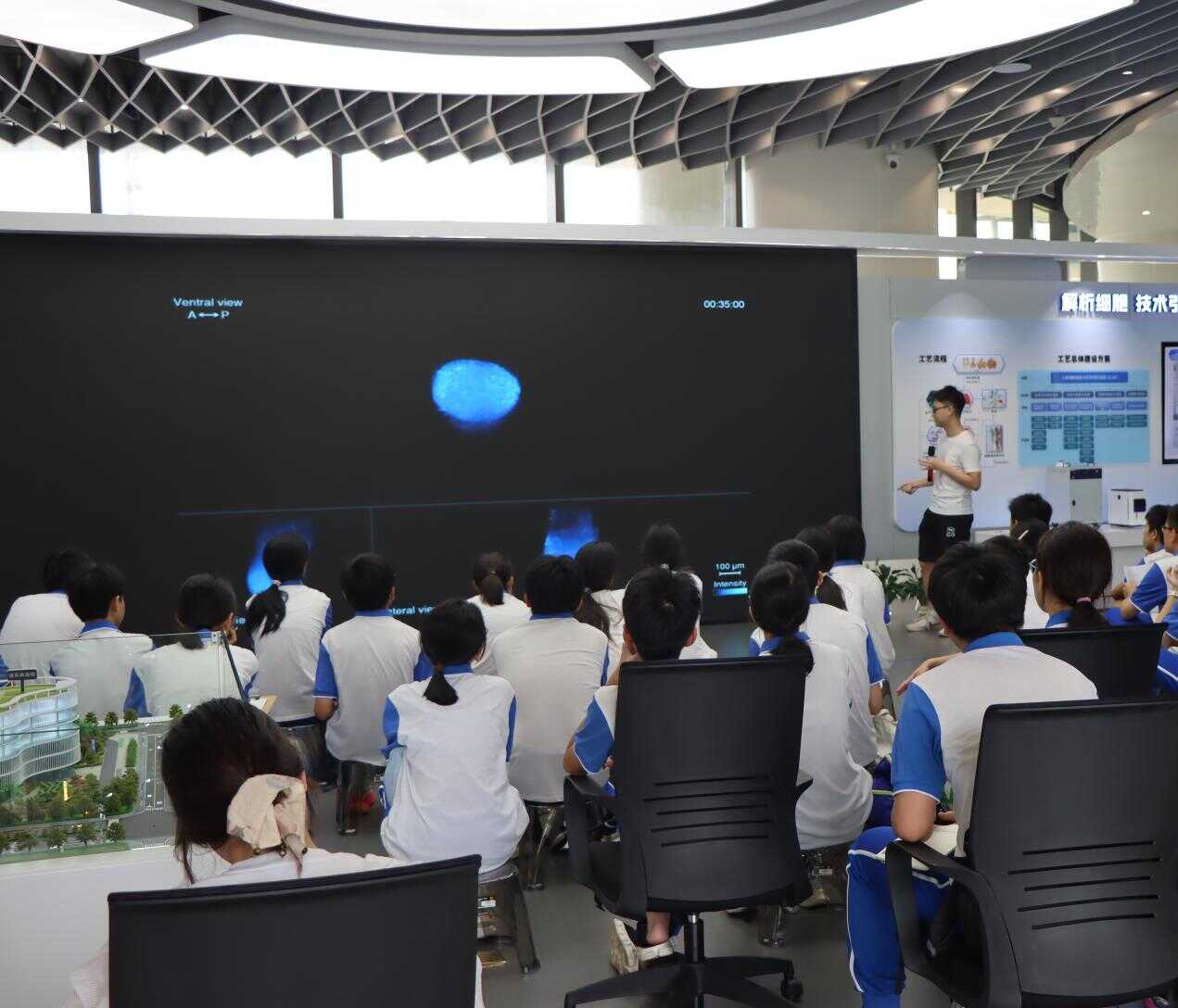 5月24日,由中國科學(xué)院廣州生物醫(yī)藥與健康研究院牽頭建設(shè)的國家“十四五”重大科技基礎(chǔ)設(shè)施——人類細(xì)胞譜系大科學(xué)研究設(shè)施(簡稱“細(xì)胞譜系設(shè)施”)在廣州國際生物島舉辦了設(shè)施開放日活動(dòng),活動(dòng)以“生命數(shù)字化大國重器‘大揭秘’”為主題,為來自廣州科學(xué)城中學(xué)的40余位學(xué)生和老師詳細(xì)介紹了這一剛剛正式啟動(dòng)建設(shè)的大科學(xué)設(shè)施?;顒?dòng)集合參觀、前沿科學(xué)儀器演示、科普講座和問答交流等多種形式。一方面具體且生動(dòng)展現(xiàn)了細(xì)胞譜系設(shè)施建設(shè)內(nèi)容、建設(shè)進(jìn)展以及預(yù)期目標(biāo),一方面深入淺出地講解了生命科學(xué)的前沿和核心細(xì)胞譜系研究的基本知識以及其在推動(dòng)疾病精準(zhǔn)治療、縮短藥物研發(fā)周期等方面的重要作用,拉近了公眾與大科學(xué)設(shè)施的距離,充分激發(fā)了學(xué)生們對生命科學(xué)的興趣和探索欲望。