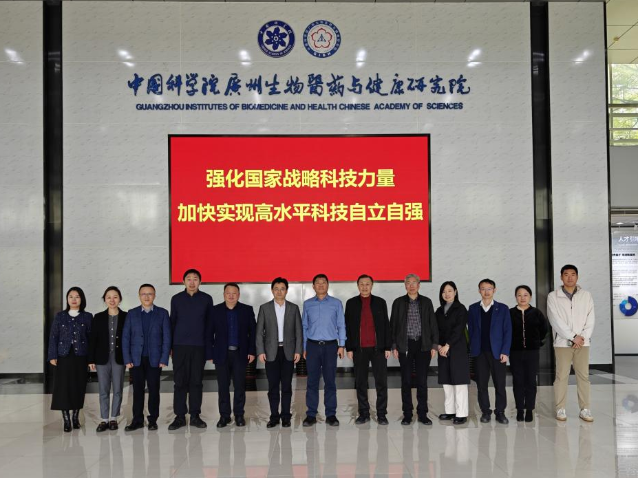 12月15日,廣州醫科大學附屬第一醫院(下稱“廣醫附屬一院”)院長黃錦坤、第五醫院(下稱“廣醫附屬五院”)黨委書記曾楊濱、院長黃偉青一行到中國科學院廣州生物醫藥與健康研究院(下稱“廣州健康院”)調研交流。廣州健康院副院長(主持工作)孫飛、黨委書記,副院長張鴻翔等熱情接待并參與座談。