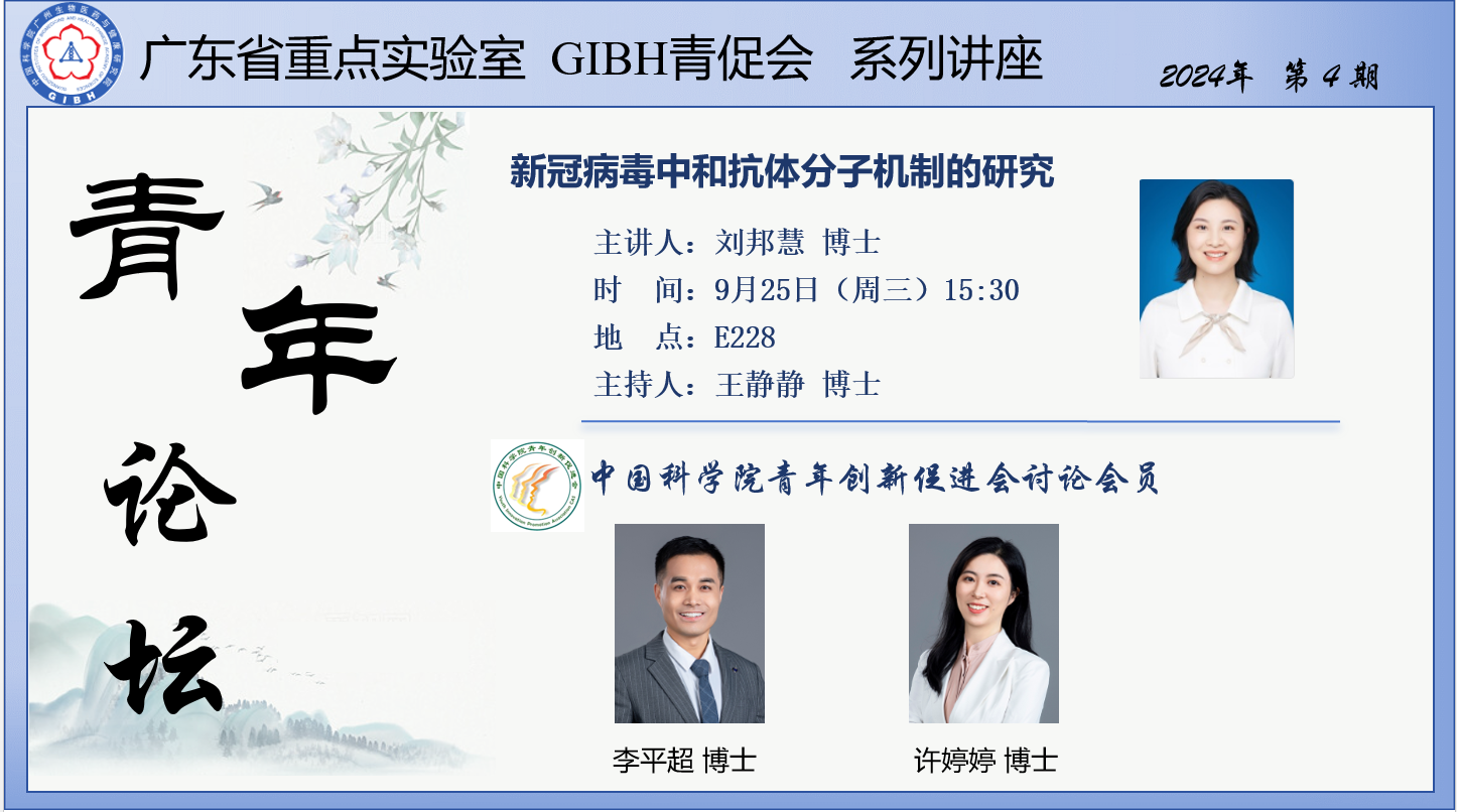 2024年9月25日廣東省重點(diǎn)實(shí)驗(yàn)室GIBH青促會(huì)系列講座(2024年第4期):新冠病毒中和抗體分子機(jī)制的研究
