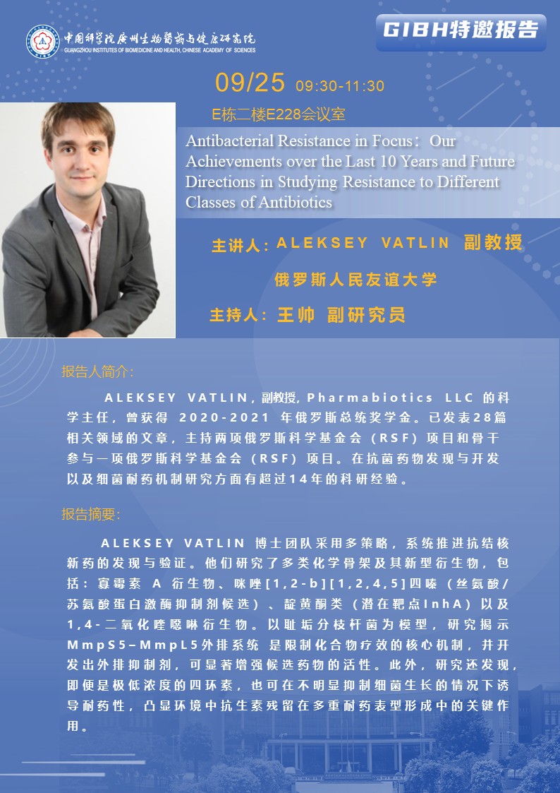 2025年9月25日特邀報(bào)告:Antibacterial Resistance in Focus:Our Achievements over the Last 10 Years and Future Directions in Studying Resistance to Different Classes of Antibiotics