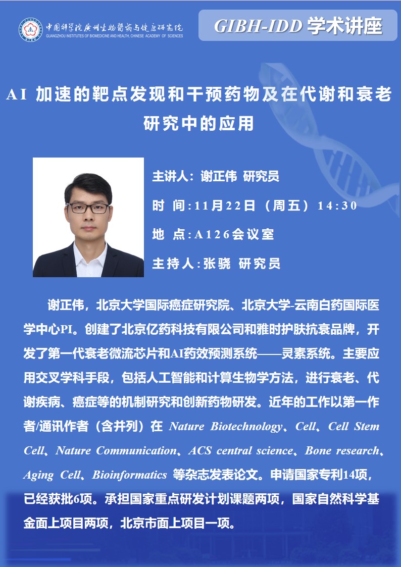 2024年11月22日GIBH-IDD學(xué)術(shù)講座:AI 加速的靶點(diǎn)發(fā)現(xiàn)和干預(yù)藥物及在代謝和衰老研究中的應(yīng)用