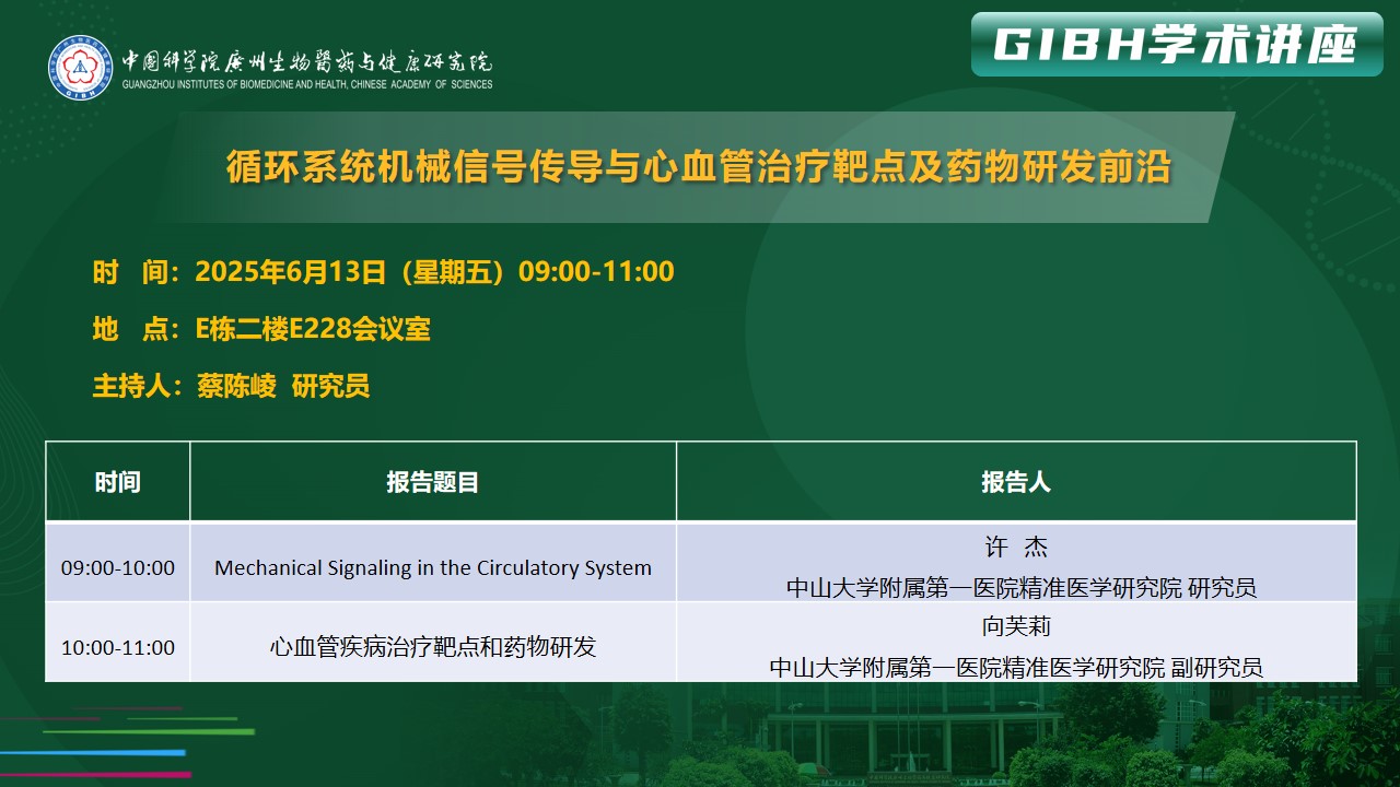 2025年6月13日學(xué)術(shù)講座:循環(huán)系統(tǒng)機械信號傳導(dǎo)與心血管治療靶點及藥物研發(fā)前沿