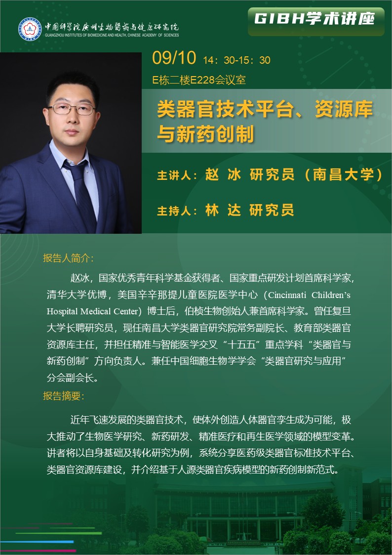 2025年9月10日學(xué)術(shù)講座:類器官技術(shù)平臺、資源庫與新藥創(chuàng)制