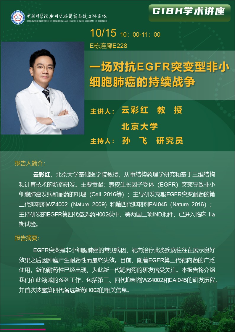 2025年10月15日學(xué)術(shù)講座: 一場對抗EGFR突變型非小細(xì)胞肺癌的持續(xù)戰(zhàn)爭