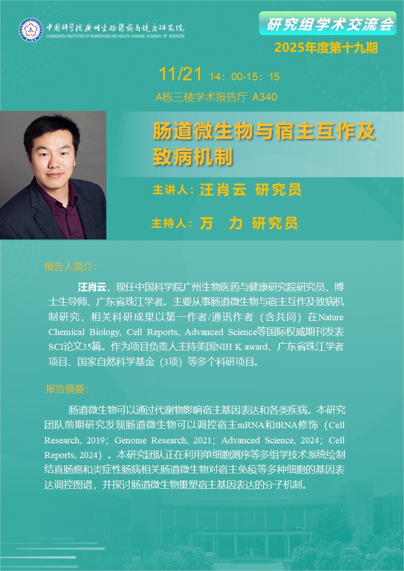 2025年11月21日研究組學術交流會(2025年度第十九期):腸道微生物與宿主互作及致病機制