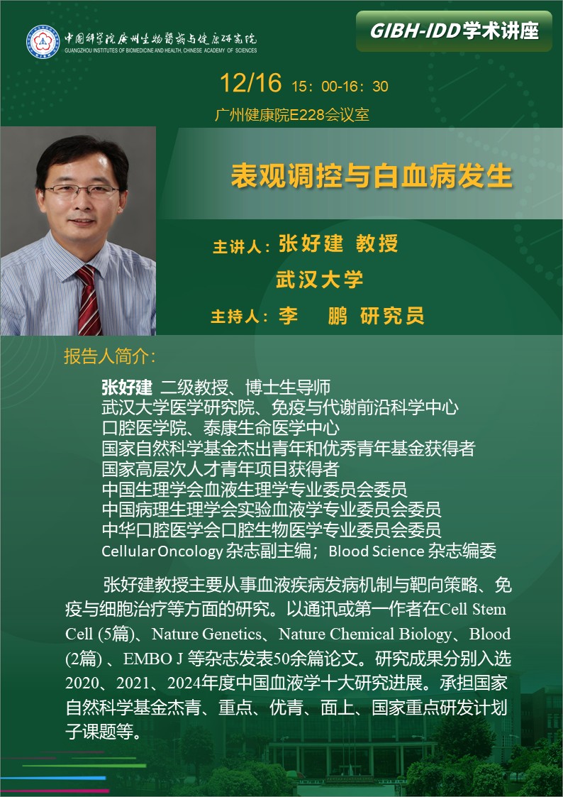 2025年12月16日學術講座:表觀調(diào)控與白血病發(fā)生