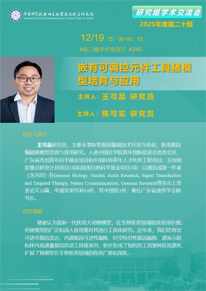2025年12月19日研究組學術交流會(2025年度第二十期):嵌有可調控元件工具豬模型培育與應用