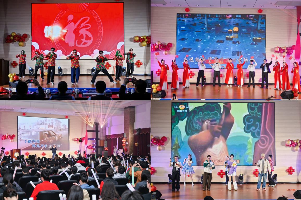 晚會以“研途·初見微光”“礪行·逐夢青春”和“新程·生生不息”三個篇章為脈絡循序展開。開場舞《八方來財》與團舞《Forever young》盡顯青春活力,歌曲《祝?!贰渡胶訜o恙?幸福同行》傳遞溫情祝福與家國情懷,國際學生創(chuàng)新秀《關(guān)雎》巧妙融合古典詩意與現(xiàn)代說唱,朗誦《筑夢灣區(qū),解碼生命——GIBH廿載拓新紀》生動再現(xiàn)研究院二十余載奮斗歷程,三輪抽獎環(huán)節(jié)與互動游戲?qū)⑼頃夥胀葡蚋叱?。超級彩蛋環(huán)節(jié)中,參加國科大集中教學的2025級碩士生、長三角與粵港澳大灣區(qū)畢業(yè)生校友分會通過視頻為研究院送來誠摯的新年祝福,教育處老師與研究生聯(lián)袂獻唱《真的愛你》,以真摯演繹為晚會增添溫情與感動。此外,中國科學院華南植物園、中國科學院廣州化學研究所以及廣州國家實驗室等單位研究生也受邀登臺表演,深化跨單位文化交流。